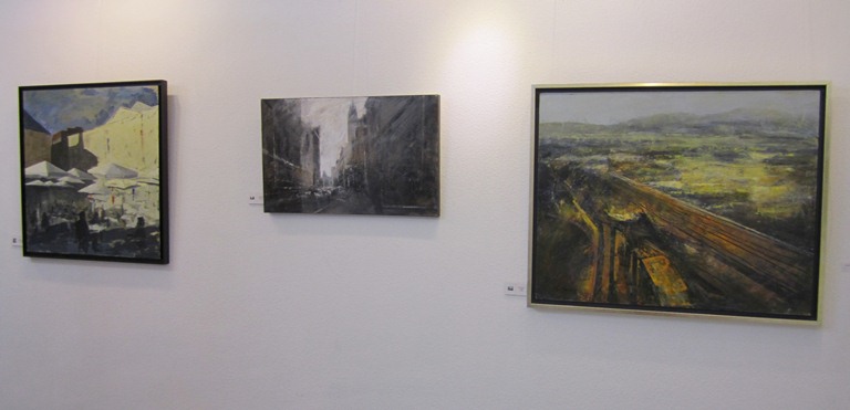 Obras de José María Palacios y Carmen Santiago (al fondo pintura urbana de Emilio Sotomayor)